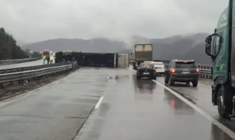 Обърнат тир затваря двете платна на магистрала Хемус